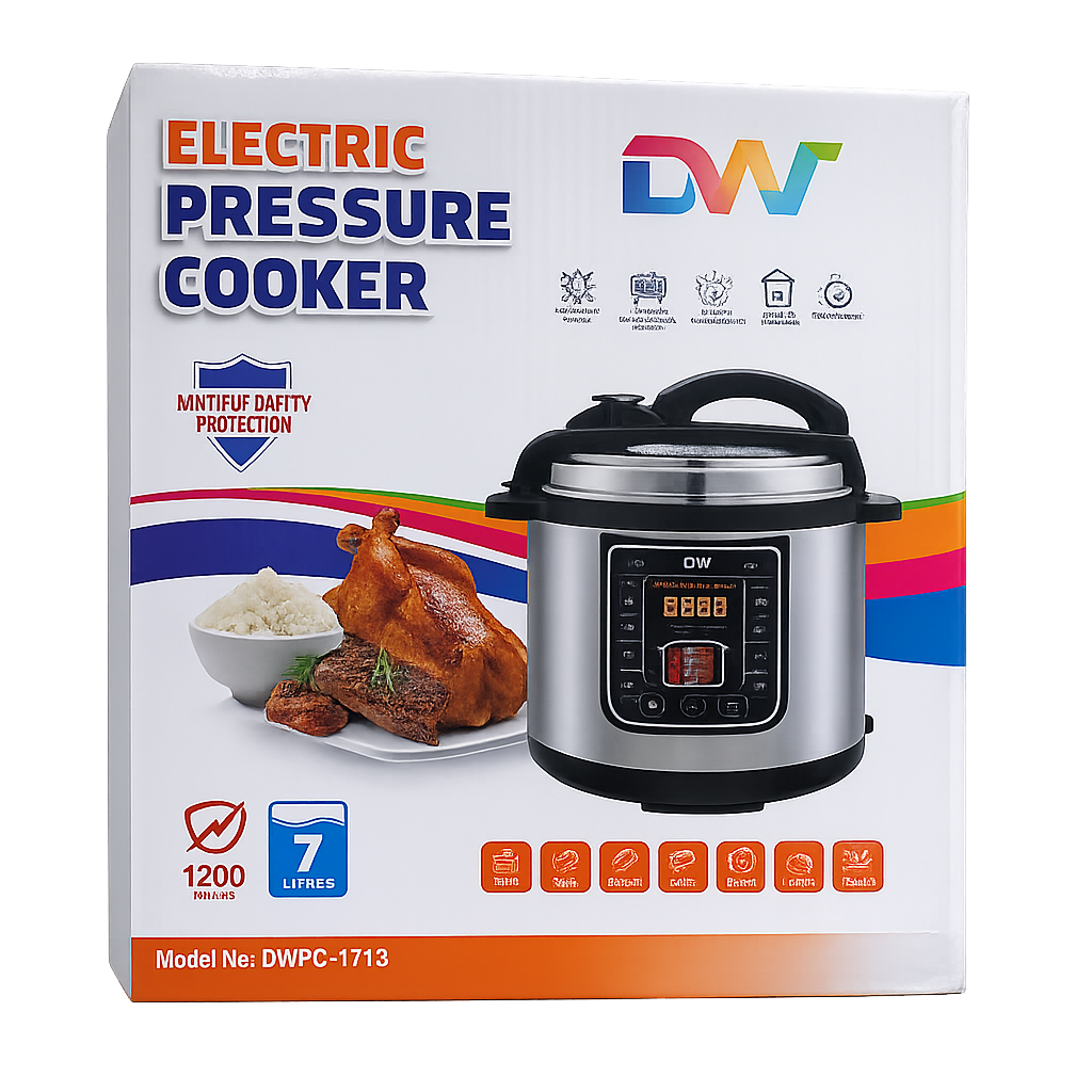 Upgrade your kitchen with the DW Electric Pressure Cooker 7 Litres (Model DWPC-1713) — a powerful, time-saving appliance designed for modern cooking in Uganda. With 1200 watts of power, this multi-functional pressure cooker delivers fast, efficient, and evenly cooked meals, perfect for busy households.