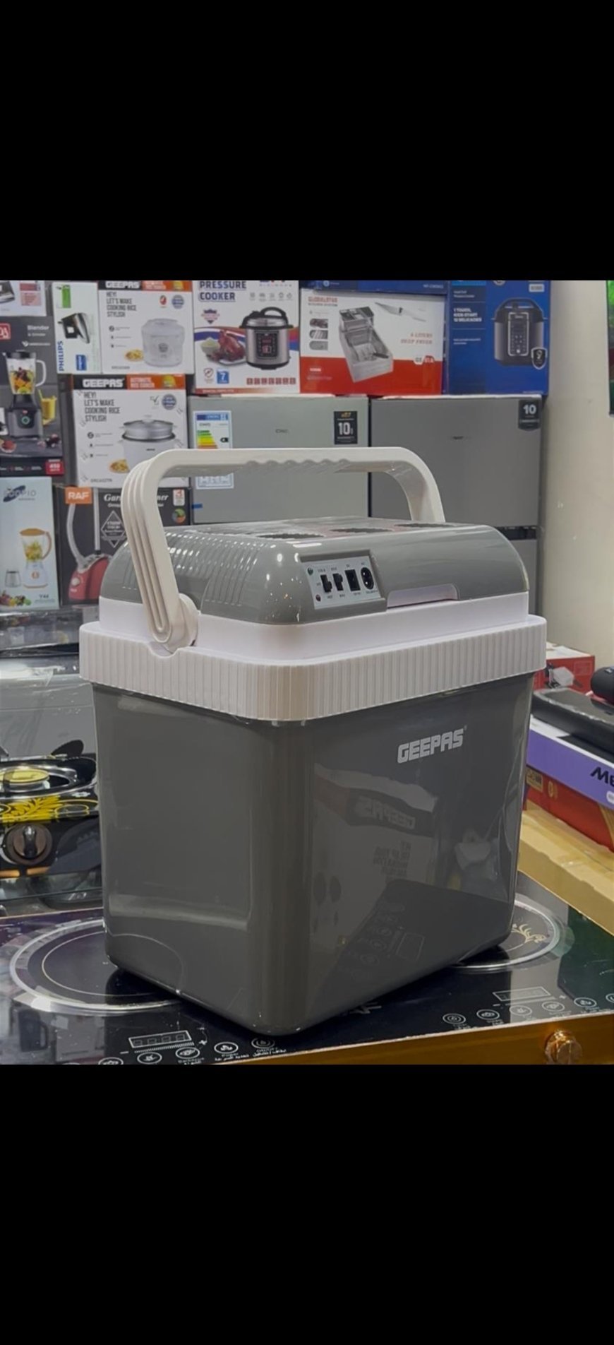 Buy Geepas Portable Electric Cooler Box in Uganda. Energy-efficient mini fridge perfect for car, travel, home & office. Order now on Majendo.com with fast delivery.