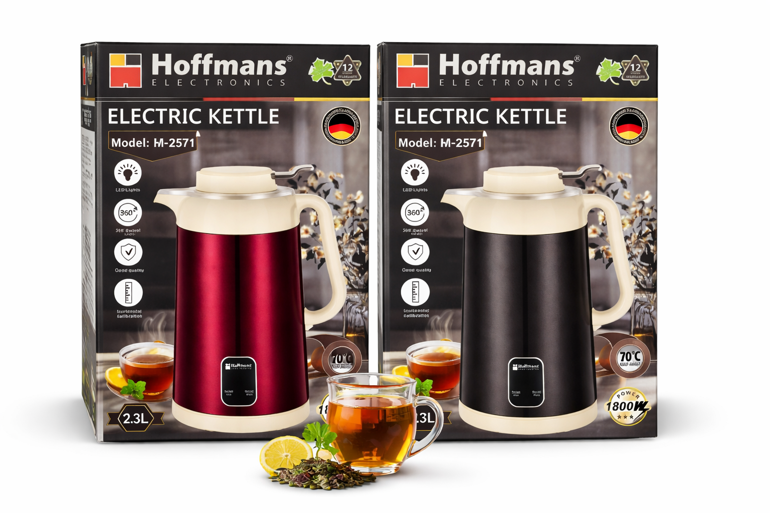 Hoffmans HM-2571 Electric Kettle (2.3L, 1800W) – Fast Boiling & Stylish Design | Majendo.com