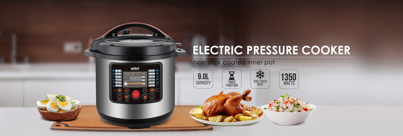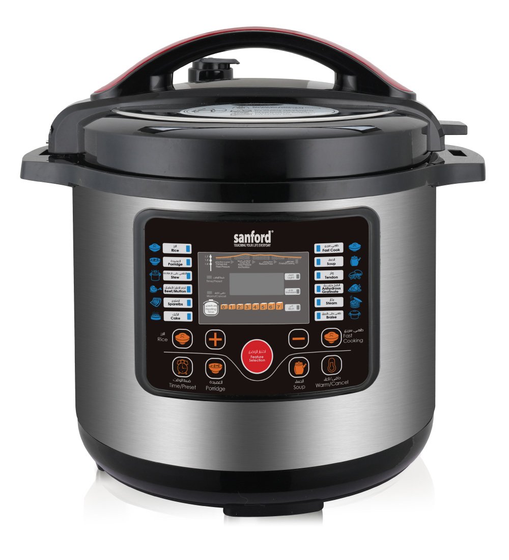 The right pressure cooker will take all the pressure off cooking. We bring you Sanford’s range of smart electric pressure cookers that will help you save time and effort in the kitchen. Sleek, elegant, ergonomic design in black and red with an overhead handle that would stand out in your kitchen, even the guests are going to want one!